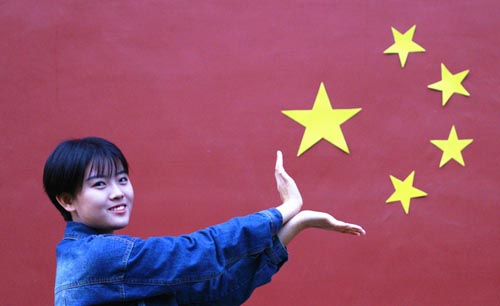 曲阜師范大學學子馬麗麗自制五星紅旗,并使出"洪荒之力"為祖國祈福,"愿祖國母親繁榮昌盛,更加富強!"