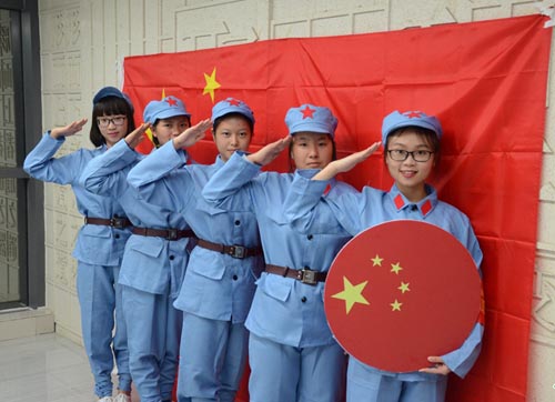 "我相信2016年10月1日,世界的眼光都會聚焦在中國,聚焦在67年來發生翻天覆地變化的中國。我們為中國驕傲,更為自己是中國人驕傲!"周口師范學院新聞學專業學子祝福祖國,并身著紅軍裝與國旗拍下合影。