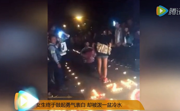 女大學生點蠟燭表白男生 二人擁吻慘遭樓上潑冷水