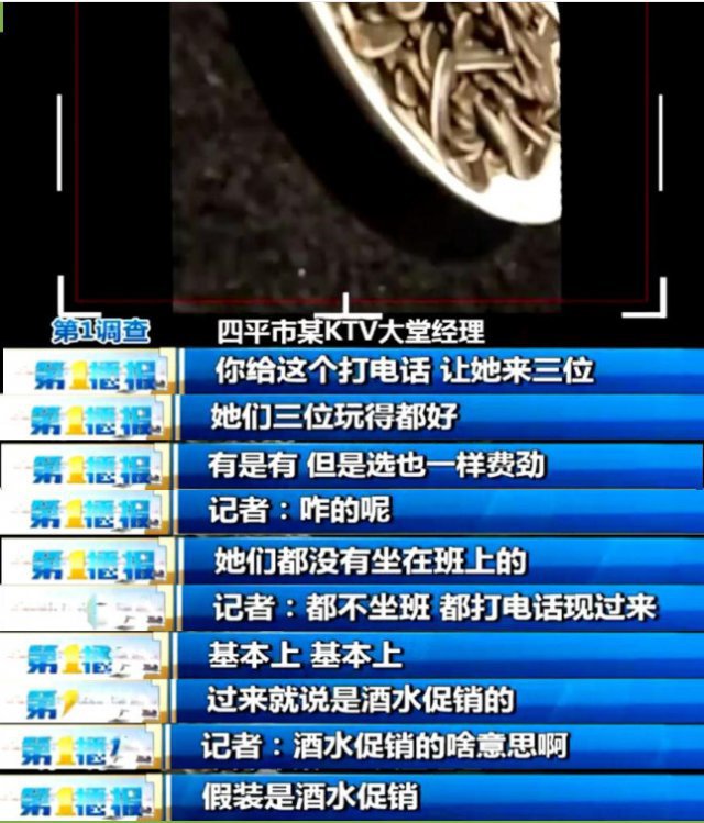 記者和經理攀談時發現,在四平市的 KTV,要先和經理認識,搞好關系,他們才會依照客人光顧的次數、認識程度,提供女孩陪酒,警覺性很高。經理看記者第一次來,便賣力推銷酒水,如果客人酒水消費沒有經理預期的高,則會推銷能喝酒的女孩,來促進消費。