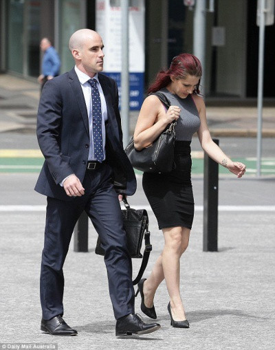 Driscoll和她的律師一起來到法院,全程她的目光看向地面,不與媒體產生任何接觸交流
