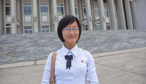 圖為朝鮮女大學(xué)生朝鮮東部城市咸興的國家大劇院前,大家覺得朝鮮女大學(xué)講的如何?