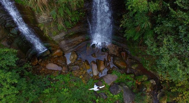圖為安靖宇在酒店配套景區體驗自然環境