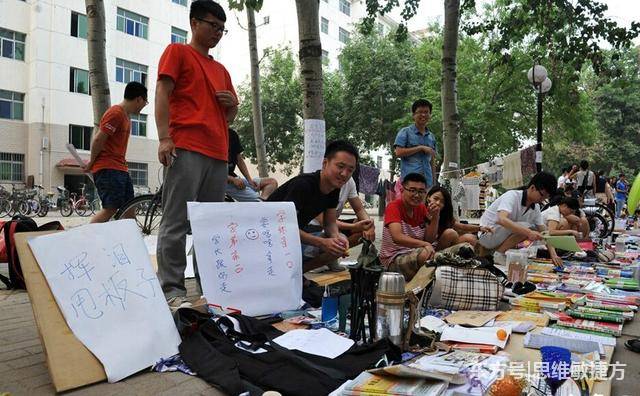 大學里很多人都是外地的,畢業時很多東西都不方便帶回家,所以干脆就賣給低年級的,所以就有了這種跳蚤市場。