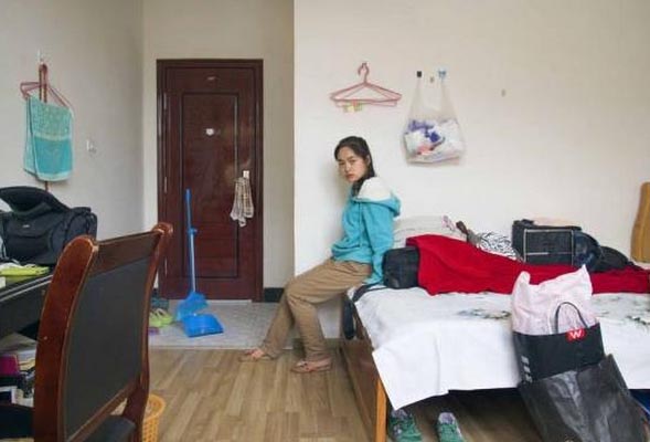 學生小林為了有個好的學習環境,選擇了在校外租房。小小的房間里正為考研奮斗。