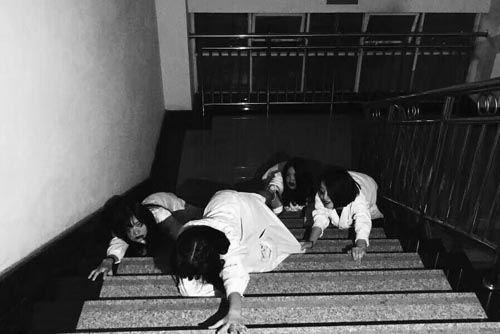 幾名女大學生在樓梯間拍攝的驚悚畢業照。