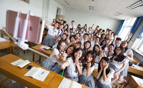 6月7日,山西財經大學的學生們在校園內拍攝各種創意畢業照,以此紀念自己的大學校園時光。圖為大學生們在教室內拍攝以《小時代》為主題的畢業照。