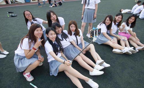 大學(xué)生們在教室內(nèi)拍攝以《小時代》為主題的畢業(yè)照。