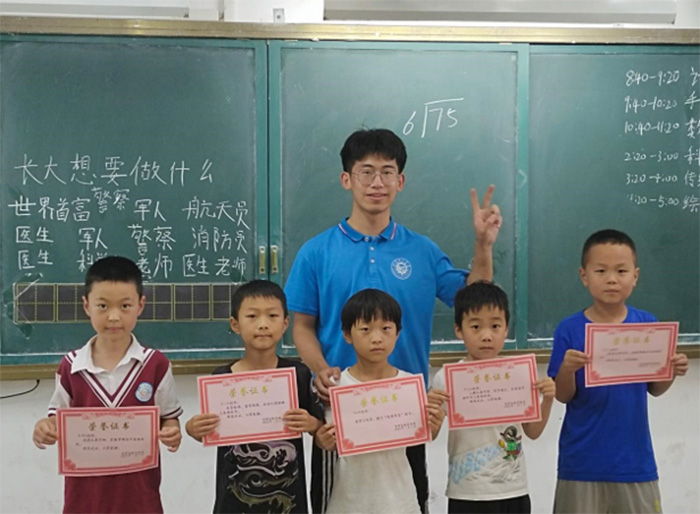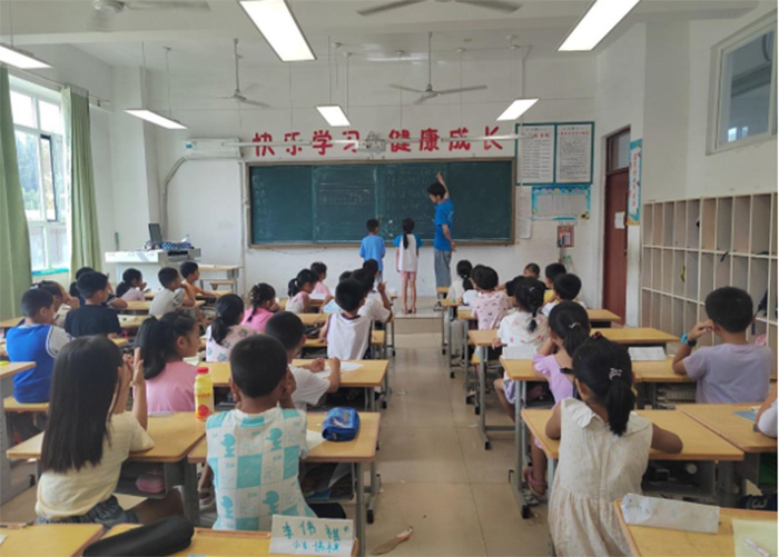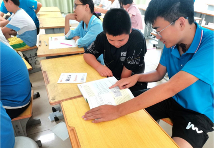 圖為講課的志愿者通過提問來查看學生對知識點的熟練程度。高鵬 攝