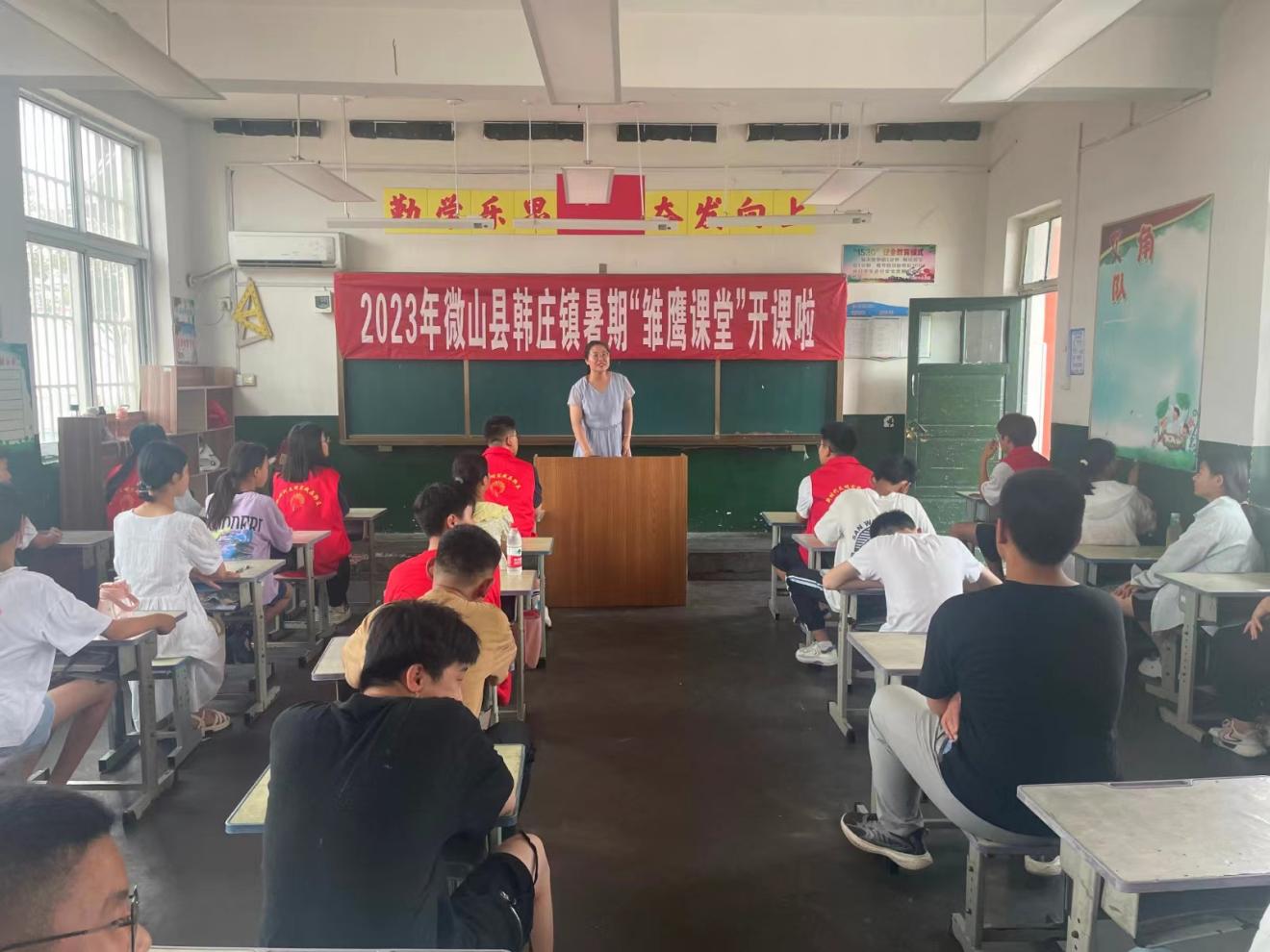 為貫徹“三下鄉”活動要求,深入農村幫扶支教,助力鄉村文化教育振興,8月22日下午,“微光星辰”社會實踐隊于山東省濟寧市微山縣韓莊鎮中心小學支教,舉行“雛鷹課堂”啟動儀式。