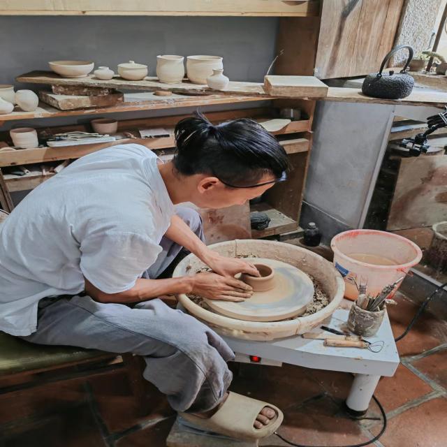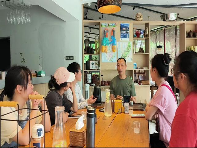 緊接著,實踐隊一行首先參觀陳紹池夫婦所經營的拾空山坊民宿,它寄托著夫婦二人的念鄉情結和對陶藝的熱愛,以“民宿+傳統制陶工藝”融合發展,打造休閑鄉村民宿。