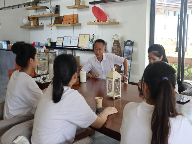 實踐隊進一步走訪兼具現代化風格和傳統閩南特色的溪園酒店。它始終恪守“連鎖卻不復制,不動聲色地融入鄉村”的理念,保留了閩南民居傳統的燕尾脊構造,內部裝修完全按照五星級酒店的軟硬件標準,同時打造“城鄉結合”的新模式。