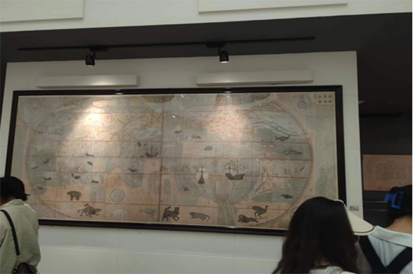 進入博愛館映入眼簾的是明朝的《坤輿萬國全圖》明朝的歷史開始浮現在腦海里。他在歷史的長河里見證了王朝的更替。赴南京博物院實踐小分隊在這里開展了問卷調研和南京歷史文化的宣傳。站在歷史見證者的面前,更加的感受到了歷史文化的獨特的魅力。