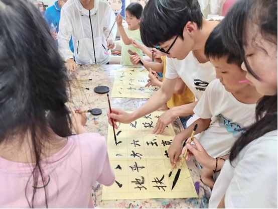 圖為代宇晗指導(dǎo)同學(xué)們學(xué)習(xí)書(shū)法,領(lǐng)略書(shū)法之美和中國(guó)文化的博大精深。通訊員 劉暢 攝