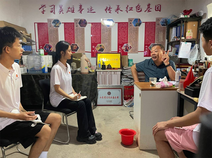 五埠村黨委書記趙同軍對團隊扎根家鄉、情系五埠的行動給予高度贊揚,在與趙書記的對話中,隊員們以美為題深入采訪,了解到當地村民在書記的帶領下挖掘到的五埠之美。趙書記直言:人民的幸福安樂是真正的鄉村之美。以人為本,美美與共,書記的發展理念深深打動了隊員,也讓大家感受到更多鄉村美學融入鄉村振興發展的創意性啟發。