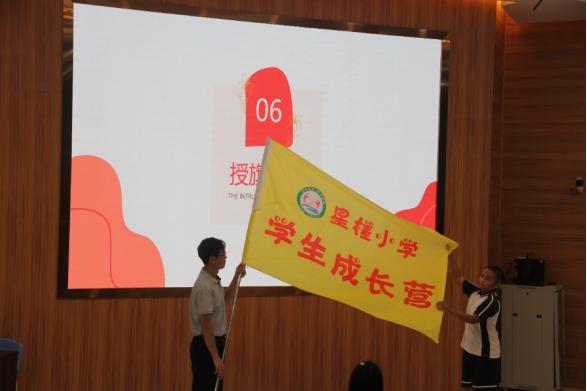 本次開營儀式以授旗環節作為結束的標志。由校長葉飛躍向學生代表何宏皓傳遞星槎小學暑假成長營旗幟。在眾人的注視下、在何宏皓同學的揮舞下,成長營旗幟在夏風中飄搖,見證著本次星槎小學2023年學生暑假成長營的順利舉辦!