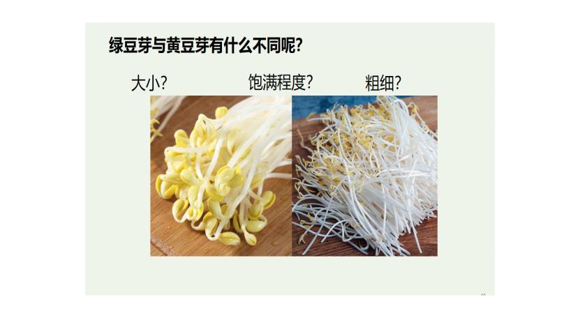 通過擴展豆芽在生活中的常見菜式與發豆芽可以使用的材料工具,陳遠嫻老師以“我們應該如何正確地發豆芽呢”這一問題開啟了今天的課程,作為勞動實踐的基本概念,相關的擴展有利于引導同學們積極思考,踴躍發言。經過同學們的積極討論,老師與同學們一起,進入課程的重點內容。