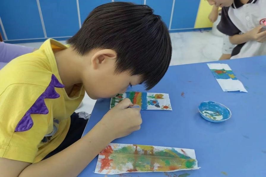 (小朋友們用心在口罩上作畫)