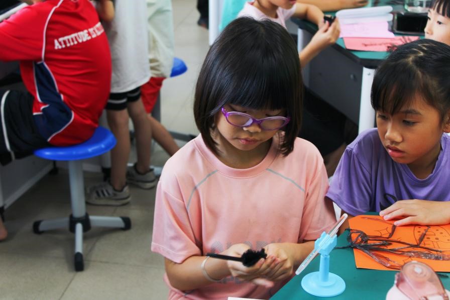 (圖三:小朋友們在嘗試摩擦橡膠棒)