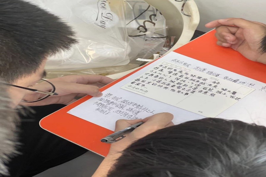 隨后,小朋友們開始了初步的分工和構思,在構思的過程中,一些擔任導演的小朋友還在小蔡老師下發的紙上寫下了劇本,并且指導組內的成員對舞臺劇進行排練。小朋友們在合作的過程中不僅體會到了團隊合作精神還嘗試了演出一個小小的劇場,鍛煉了聯想創新的能力以及上臺表演的能力。
