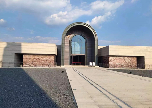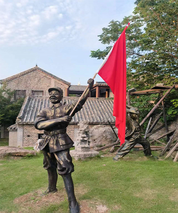 當實踐小隊走進鐵道游擊隊紀念館,仿佛穿越回了歷史的長河,親身體驗著那段充滿榮光和犧牲的歲月。紀念館的大門前聳立著一座巍峨的雕塑,雕像頂端的鐵道線條交錯,顯露出堅定的抗戰決心。整個氛圍充滿了莊嚴肅穆的感覺。