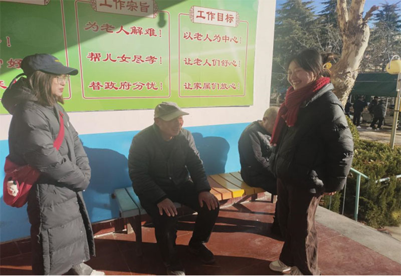 成員們積極承擔(dān)了清掃和維護(hù)環(huán)境衛(wèi)生的工作,主動(dòng)為老人打掃衛(wèi)生,鏟雪、掃地、擦桌子、整理床鋪等,并與老人們交流互動(dòng),仔細(xì)了解他們的身體健康狀況、日常生活情況和日常休閑活動(dòng),細(xì)心提醒老人們天氣冷了注意增添衣服、合理飲食,親切的話(huà)語(yǔ)和純真的笑容給老人們帶來(lái)了極大的精神慰藉。