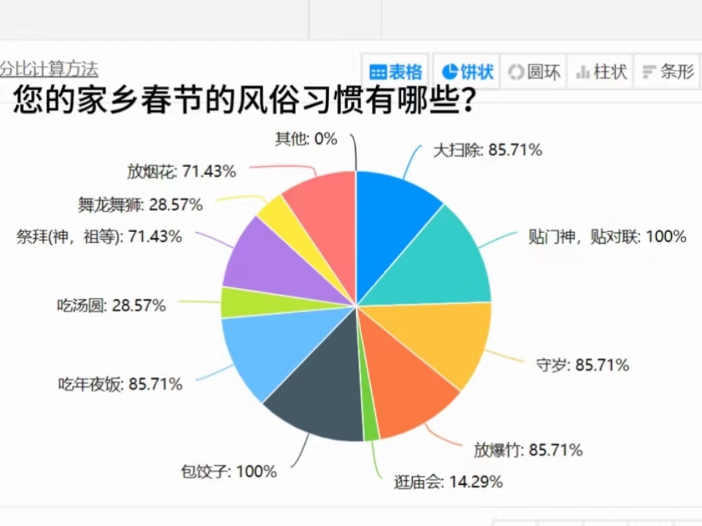 實(shí)踐隊(duì)隊(duì)員對(duì)統(tǒng)計(jì)數(shù)據(jù)進(jìn)行分析,得到以下結(jié)論。不同地區(qū)習(xí)俗雖有不同但均以包餃子、貼對(duì)聯(lián)、吃年夜飯、守歲等習(xí)俗為主;春節(jié)文化習(xí)俗的意義有活躍節(jié)日氛圍、增添家庭凝聚力等;且大多數(shù)市民認(rèn)為現(xiàn)在的過年過節(jié)的氛圍沒有之前有范圍,其原因主要有現(xiàn)在社會(huì)節(jié)奏太快,有些習(xí)俗失去意義。