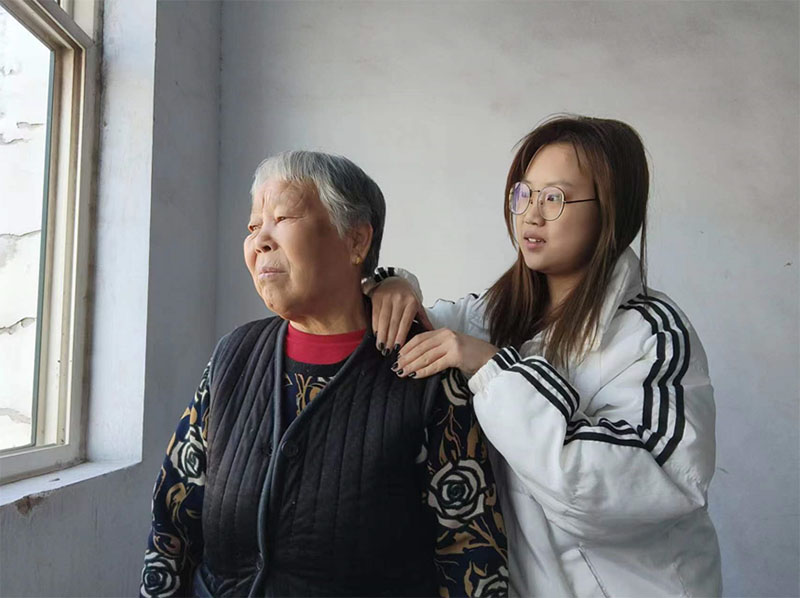 圖為實踐團成員杜夢琪、孫贊與老人聊天