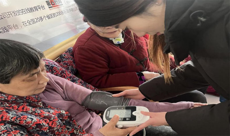 實踐團成員為老人量血壓