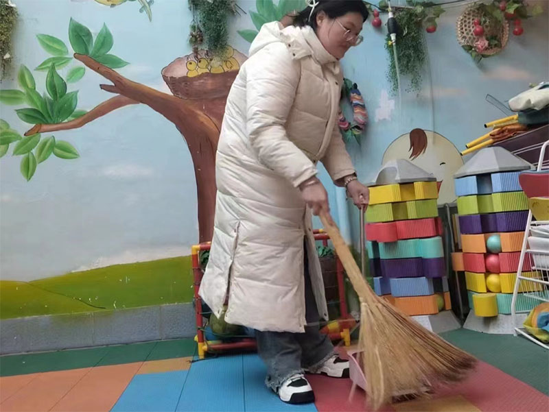 圖為“快樂隊”實踐團成員趙涵月幫助教師打掃衛生