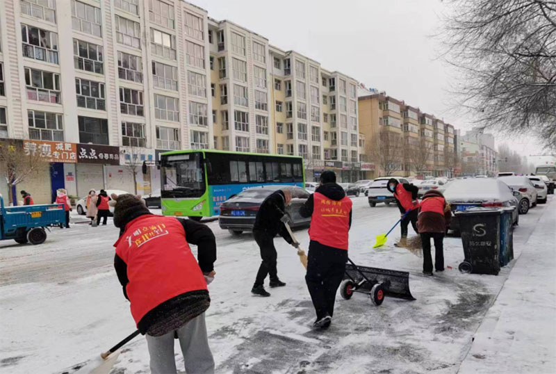 注:志愿者積極參加大雪后的路面清掃