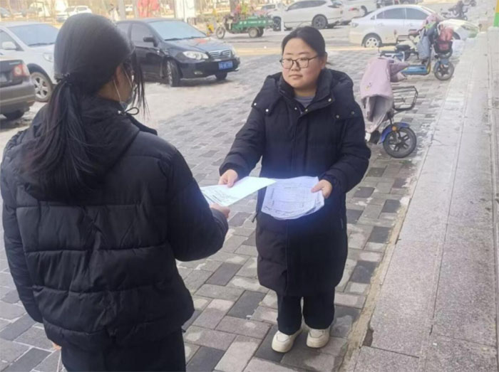 實(shí)踐團(tuán)成員分發(fā)宣傳彩頁(yè)