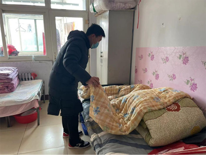 1月21日,實踐活動即將結束之時,實踐團成員同學幫助老人收回最后一套被子,這也代表當代大學生敬老愛老的一顆心。
