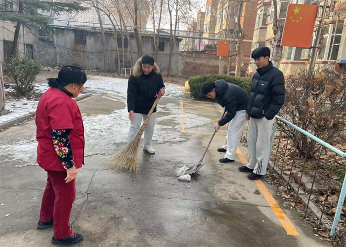 一到敬老院,實踐團成員們立刻進入狀態,掃地、拖地、清理垃圾、分類整理衣服,在居住期間給老人們創造一個更加干凈衛生的生活環境。成員們在做完清潔衛生后,坐在一起陪老人聊聊閑話拉拉家常,打掃院內積雪,詢問敬老院的老人們最近身體情況,幫助老人們檢查是否有過期的藥物,細心地告訴他們哪些藥物不能隨便吃。敬老院的老人們大多是七十多歲,成員們純真的表情,親切的話語,逗得老人們樂不可支,其樂融融,整個敬老院充滿了歡聲笑語。