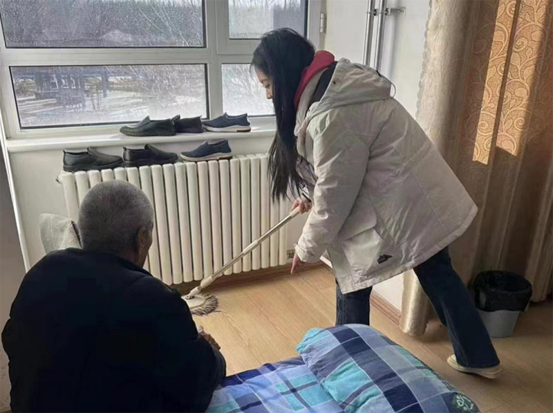 成員們積極的包攬了服務中心的衛生工作,主動為老人打掃衛生,整理床鋪,桌子等。并與老人們分享生活日常,提醒老人天冷加衣,合理的飲食,注意身體情況。關心他們的身體健康,給老人們帶來了極大的快樂。