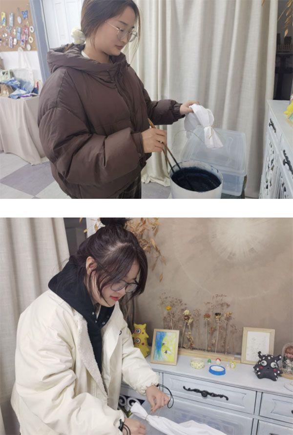 “青取之于藍,而青于藍。”散落在詩詞里的自然“藍”,落在布料上變成了顏色“藍”,也就誕生了中華獨特的染色工藝——扎染。為了擴大扎染文化的影響力,團支部經過深思熟慮,細致規劃了一場獨具特色的扎染文化體驗活動。3月2日,會計ACCA2201團支部齊聚扎染手工坊,以“非遺傳承·布里生花”為活動主題,開展了一次團建活動。此次活動由團支書高亦凡擔任組織者,會計ACCA2201團支部的所有成員均積極參與其中。