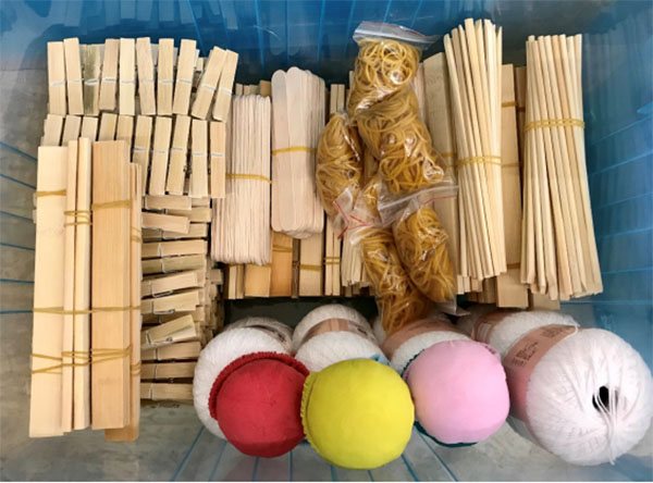 天然的染料、潔白的布料,以及扎線、木板、橡皮筋、繩子、夾子等工具一應俱全,一切已準備就緒。