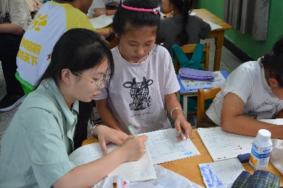 課程結(jié)束后,支教團隊繼續(xù)為學(xué)生們提供作業(yè)輔導(dǎo)服務(wù),每張桌子都有團隊成員耐心解答學(xué)生們的疑問,直至放學(xué)。