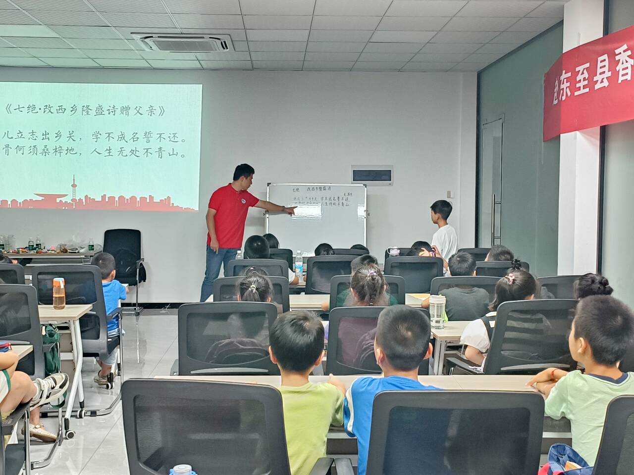 2024 年 7 月 11 日,在東至縣香隅鎮的田園課堂上,一場別開生面的趣味語文詩詞教學課正在熱烈展開。此次課程聚焦于毛澤東的《七絕·改西鄉隆盛詩贈父親》,為學生們帶來了一次精彩紛呈的詩詞之旅。