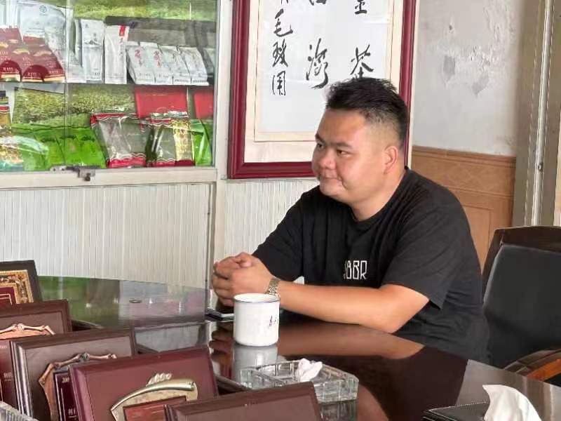 正午,頂著炎炎烈日,隊員們行走在小鎮安靜的路上,沿途的環境猶如一幅細致入微的畫卷。到了茶廠門口,金井茶廠茶旅部部長范瀟和辦公室主任吳浪就熱情地招呼隊員們進了接待室,剛等隊員們坐下,范部長就端上了金井出品的綠茶,綠葉沉底、茶香四溢。于是大家在品茶過后,簡單寒暄幾句就開始了今天的采訪。