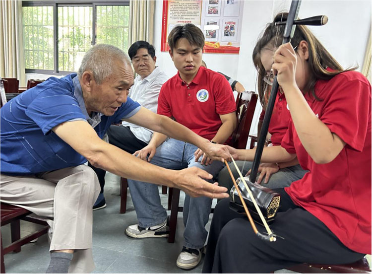 在廣場(chǎng)旁邊的活動(dòng)室里,志愿者們與當(dāng)?shù)卮迕耖_展了豐富多彩的文化交流活動(dòng)。他們合作演繹了唱歌和樂(lè)器演奏,悠揚(yáng)的旋律、動(dòng)聽的歌聲在活動(dòng)室上空回蕩,傳遞著文化的溫暖與力量。特別值得一提的是,志愿者們還與當(dāng)?shù)卮迕襁M(jìn)行了拉二胡的交流。琴聲悠揚(yáng),情感交融,共同演繹了一曲曲動(dòng)人的樂(lè)章。通過(guò)這次文化交流活動(dòng),志愿者們更加深入地了解了當(dāng)?shù)卮迕竦奈幕詈途耧L(fēng)貌。