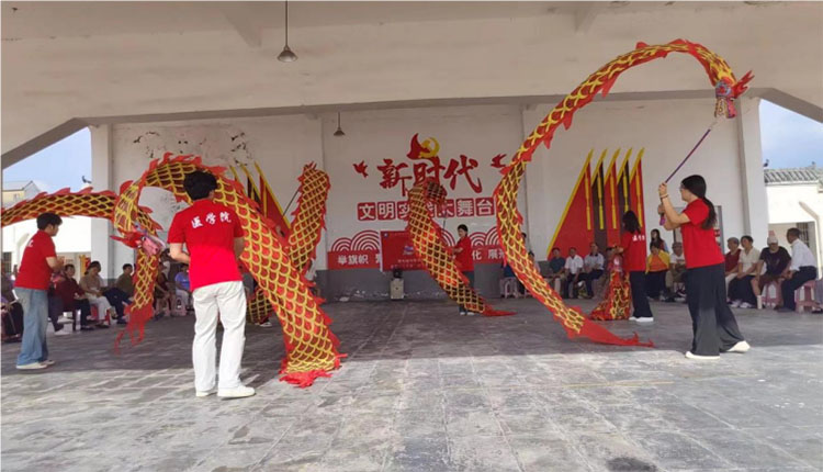 為深入挖掘滁州省級(jí)非遺“二龍戲蛛”舞龍歷史根源,傳承創(chuàng)新舞龍技藝,激發(fā)志愿者們將學(xué)術(shù)理論與實(shí)地經(jīng)驗(yàn)融為一體的熱情,同時(shí)為當(dāng)?shù)氐奈幕糜魏徒?jīng)濟(jì)發(fā)展注入新的活力,2024年7月5日,滁州城市職業(yè)學(xué)院學(xué)子懷揣著對(duì)非遺舞龍文化的熱愛與傳承的使命,近日前往定遠(yuǎn)縣池河鎮(zhèn),開展了一場(chǎng)別開生面的暑期“三下鄉(xiāng)”實(shí)踐活動(dòng)。在當(dāng)?shù)匚膴蕪V場(chǎng)及周邊,志愿者們與村民們共同演繹了一幕幕文化傳承與創(chuàng)新的精彩篇章。