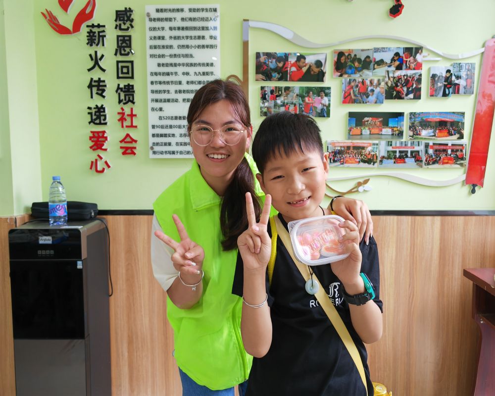 孫秀珍站長對淮陰工學院自動化學院金色陽光志愿者隊“青春宣講行,志愿傳遞光”暑期實踐團在“5·20志愿者愛心聯盟”義務輔導表示熱烈歡迎和誠摯的感謝。孫站長表示,今年是自聯盟成立以來開展的第十五期“心手相牽 助力成長夢”大學生進社區暑期文明實踐公益活動,從當初二十幾平的小房間到如今這樣一個溫馨的大教室,離不開中國共產黨的領導和社會各界人士的支持。最后,大家在孫站長的帶領下,共同唱起了那首振奮人心的《沒有共產黨就沒有新中國》。
