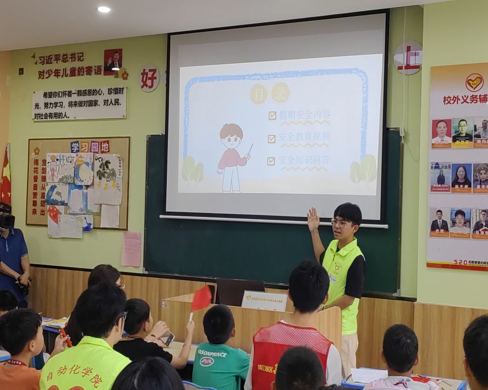 開班儀式上,志愿隊隊長倉世鑫對小學生們進行了暑期安全教育,主要包括防溺水安全教育和消防安全教育兩部分。防溺水安全教育介紹了青少年容易發生的溺水事故情況并提供了溺水時的自救方法,如保持鎮定、仰泳露鼻、深吸淺呼等。消防安全教育介紹了消防安全標志和設施并提供了火災發生時的自救和互救方法。此外,還通過安全知識問答的形式調動了小朋友們的積極性,大大提升了同學們的參與度。