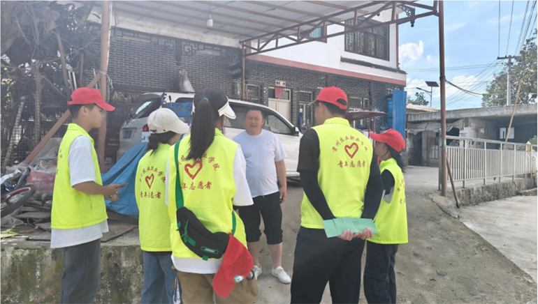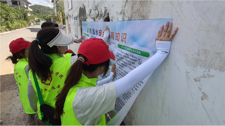 到達小坡村后,踐行團深入小坡村各處,通過張貼海報、與村民熱情交流介紹等方式,全面細致地了解小坡村整體情況的同時開展了交通安全、防溺水安全等安全意識宣傳。