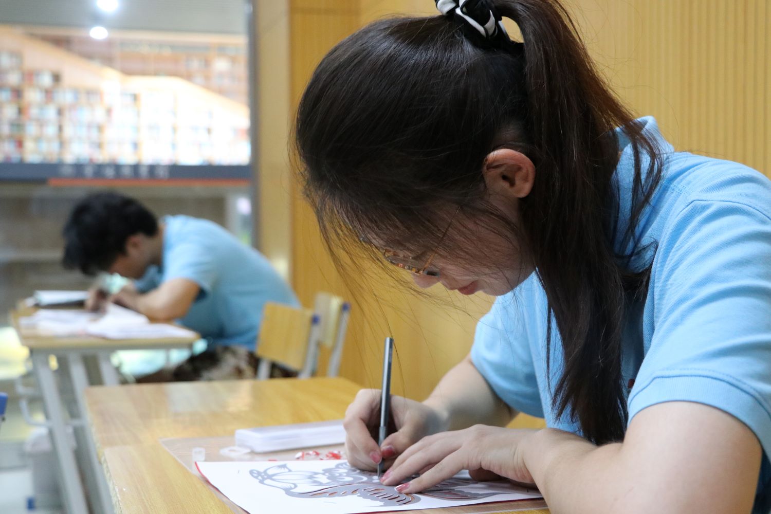 圖7實踐團成員正在認真刻紙