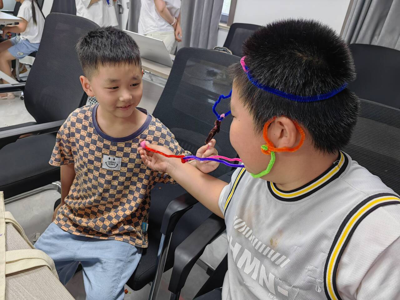 童趣是天真的盒子,里面裝滿了無限的想象力和希望。為了提高孩子們的動手能力,激發他們對新事物的興趣和好奇心,“微芒成陽”實踐團在7月17日開展了手工創意扭扭棒課程。