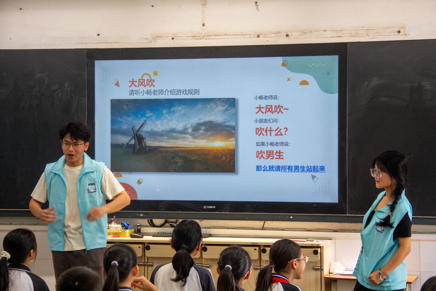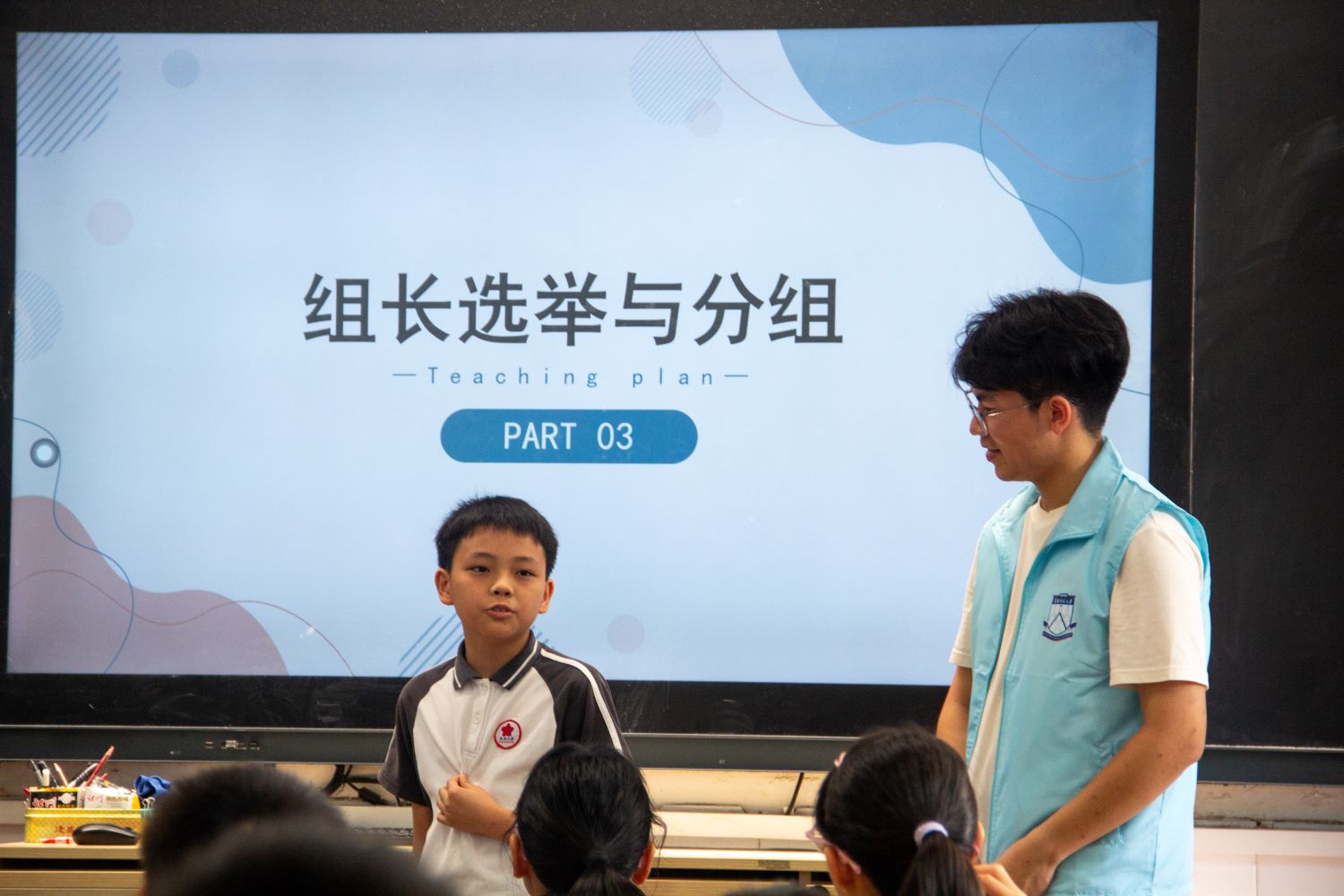 夏日炎炎,在一片蟬鳴聲中,華南師范大學物理學院團委學生會服務隊滿載一年星光,又一次來到了星槎小學開展暑期成長營的活動。2024年7月17日上午,服務隊成員小暢老師及圈圈老師圍繞“共同成長,攜手向前”這一主題,攜手主持了一場趣味盎然的開班儀式,旨在讓小朋友們充分認識老師、認識彼此,進而保證今后課程的順利開展。開班儀式分為自我介紹、游戲互動、班規介紹等環節,每一環節均各具特色。小朋友們也在自我介紹中逐漸認識彼此,在有趣的游戲中打開心扉,在老師的教導中認識到各種規則紅線并牢記于心。