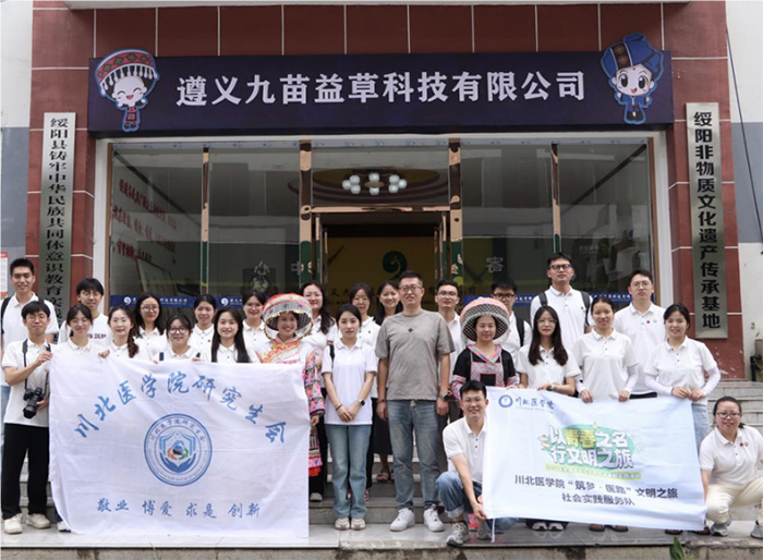 7月19日,川北醫學院研究生“筑夢醫路”社會實踐隊師生走進貴州省遵義市綏陽縣,一同領略苗族非物質文化遺產苗族刺繡和苗醫苗藥的獨特魅力。