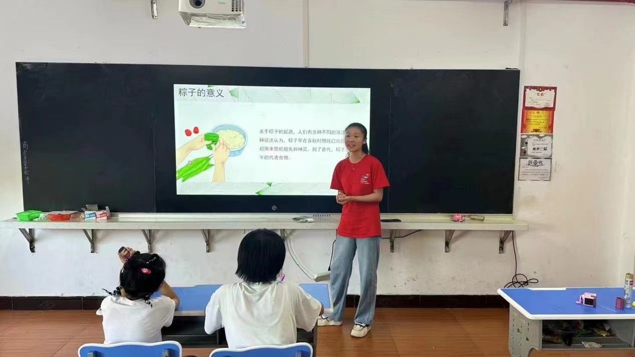 隨后,志愿者們將活動引向傳統節日文化的體驗。他們通過精美的圖片、生動的視頻和通俗易懂的講解,向孩子們介紹了端午節的由來、習俗(如包粽子、賽龍舟、掛香囊等)。同時,志愿者們還帶領孩子們親手制作了端午節傳統香囊,讓孩子們在動手實踐中感受中華傳統文化的魅力,并加深對中國傳統節日的理解與情感聯結。